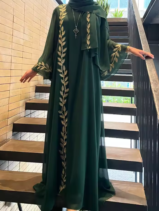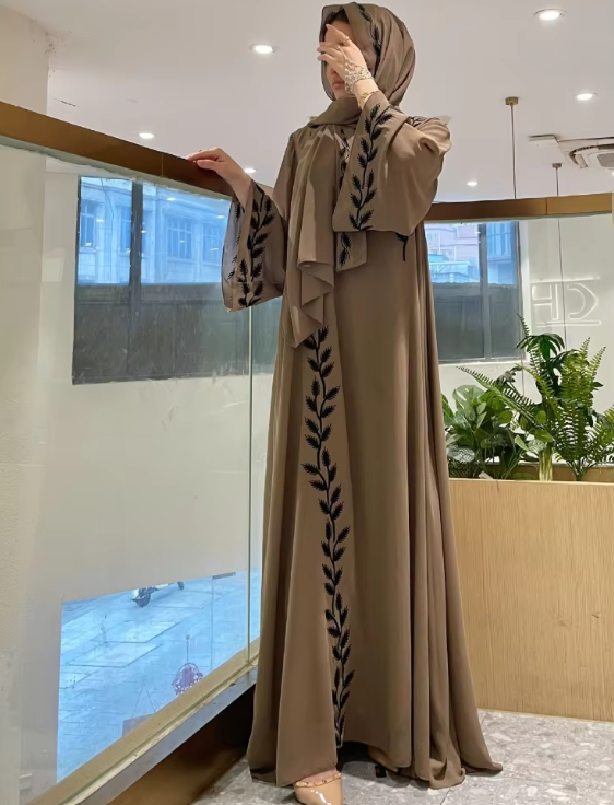 The abaya is very nice and pretty the quality is amazing. I got size medium but it’s length is really long and arms are pretty short, for reference i am 5,6
